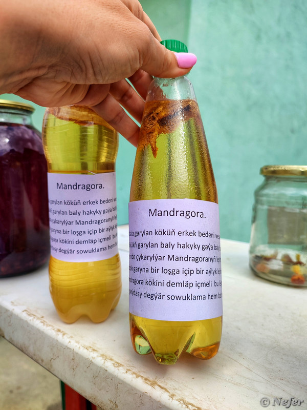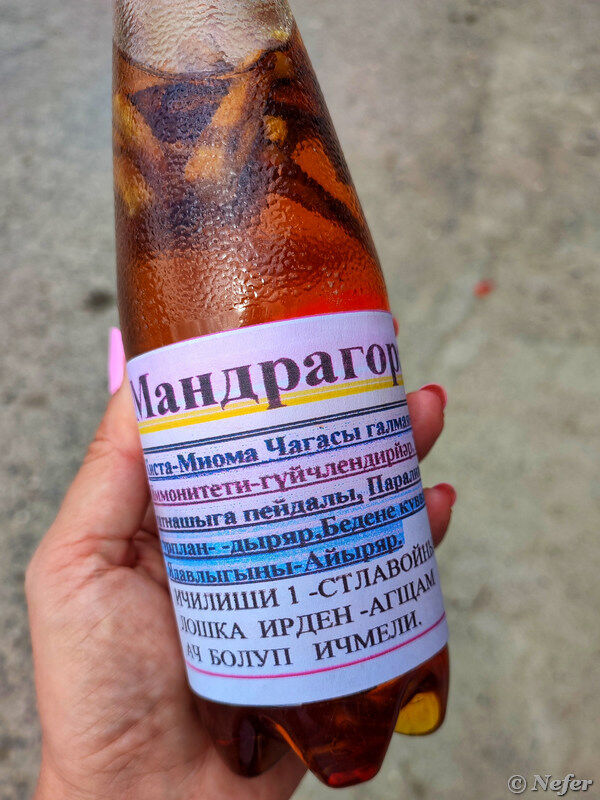 Дело было в туркменском селе Нохур, оно находится в горах недалеко от Ирана. На рынке продавались бутылки с плавающими внутри корешками. На этикетке написано MANDRAGORA.