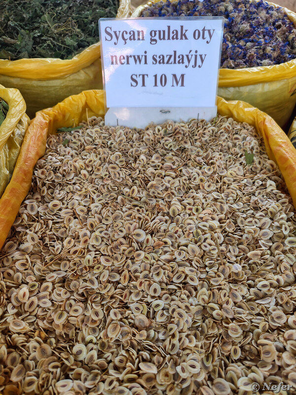 А это юзерлык - очень популярная в Туркменистане трава, используется для обеззараживания. Причем как на физическом уровне, так и на ментальном. Согласно народным поверьям, юзерлык отпугивает злых духов и темные силы, защищает дом и его обитателей "от сглаза". Дымом юзерлыка окуривают жилища, а пучки засушенных растений вешают на видном месте. Прочитала, что юзерлык содержит психоактивные вещества, и с 2020 года ввоз растения на территорию РФ запрещен. Растение также известно под названиями гармала, могильник или рута.