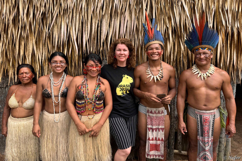 Перелет через половину Бразилии, и мы в столице Амазонии - Манаусе. Город-миллионник, некогда построенный в джунглях. Расцвет Манауса пришелся на период каучуковой лихорадки. Если этого не знать, архитектура поражает, прямо европейский город, в центре большой красивый театр - когнитивный диссонанс. А потом мы долго плыли на лодке в деревню индейцев гуарани. Племя контактное, к ним часто приезжают туристы, с которыми они делятся своей культурой.