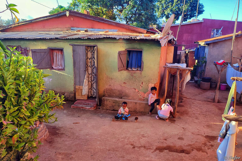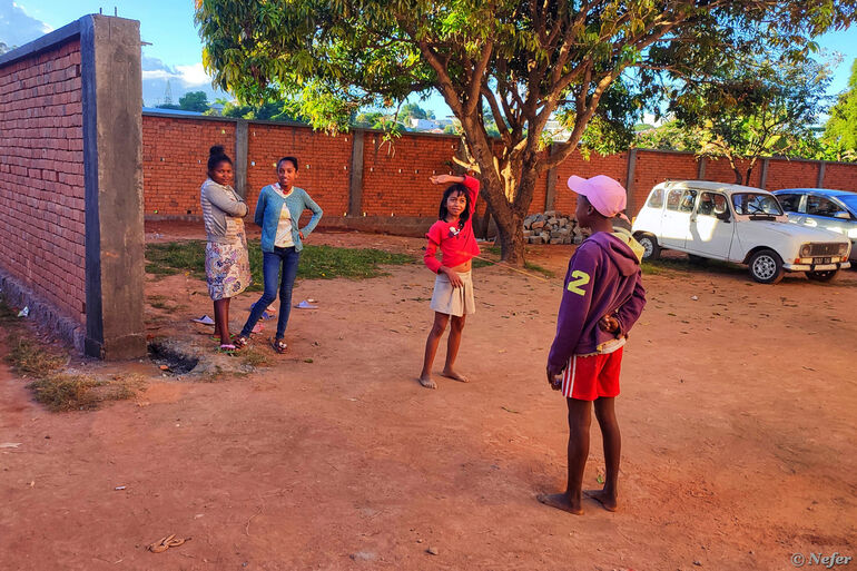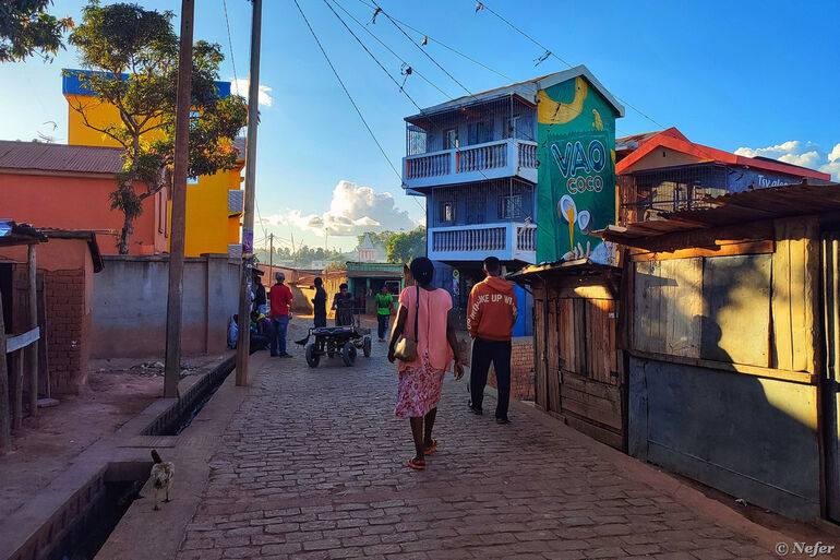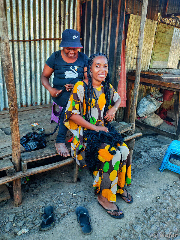 Поначалу было стремно. Непонятно, чего ожидать от этих малагаси. Мы смотрели на них, они на нас. Если улыбаешься, они улыбаются в ответ. Потом я осмелела и стала фотографировать. Оказалось, никто не против, некоторые даже наоборот. Большая часть жизни происходит на улице: торговля, детские игры, даже парикмахерские услуги.