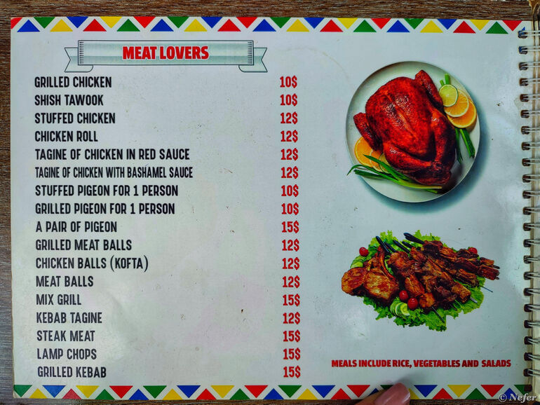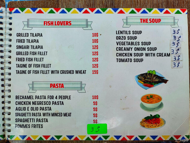 Лодка ожидала нас у причала отеля ArtiKa Wadi Kiki, там же есть ресторан. Меню для информации. Обратите внимание, цены в долларах.