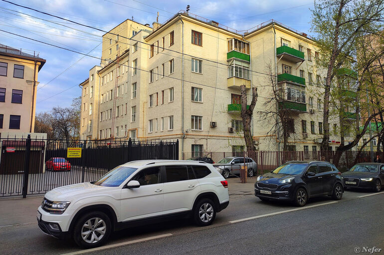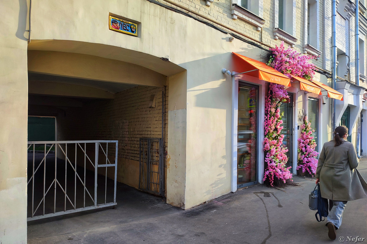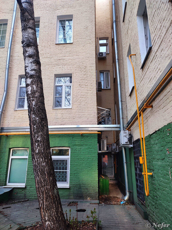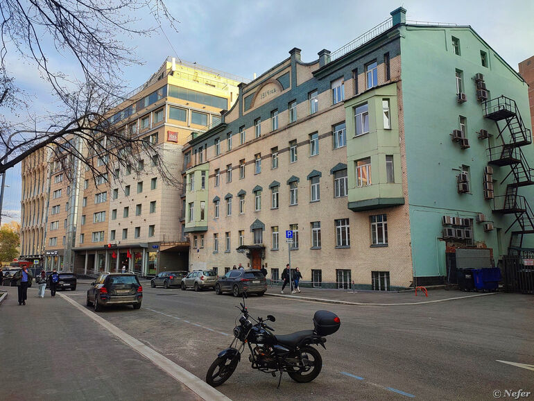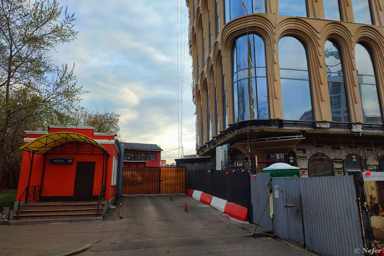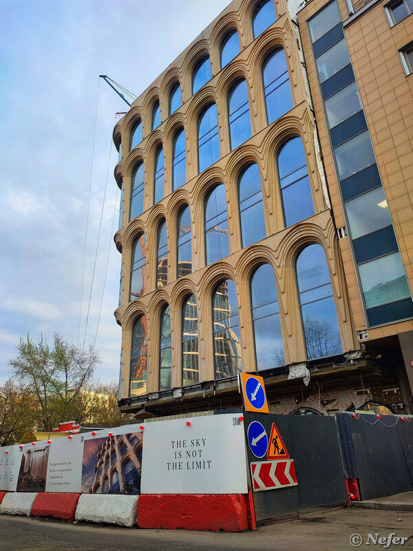 Пересечение Строченовского переулка с улицей Зацепа. Тут я остановилась, пытаясь переосмыслить пространство. Старый двухэтажный дом 1905 года, затянутый строительной сеткой. Так делают, чтобы отвлечь внимание и ждать, когда он саморазрушится, а потом снести. Справа от него бизнес-центр "Велка", построенный в 2004 году. А в глубине возвышается четырнадцатиэтажный апарт-комплекс "Резиденции "Замоскворечье".