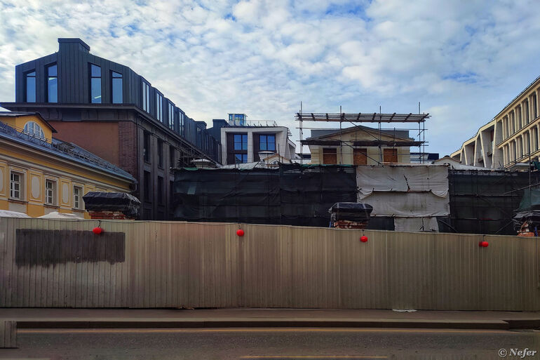 Ближе к метро жилой комплекс "Стремянный 2", изначально строился как ЖК "Амарант", потом сменился застройщик. Проект в неоклассическом стиле разработан тем же архитектурным бюро SPEECH. Не могу вспомнить, что было на этом месте раньше.