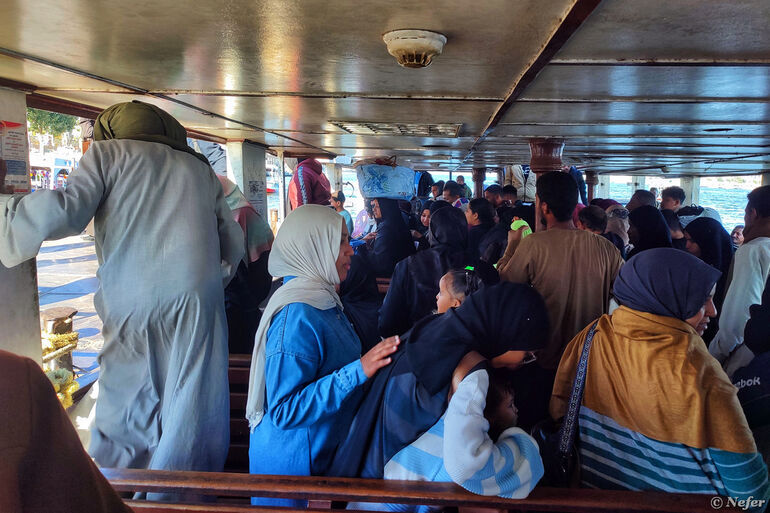 Если у тебя неарабское лицо, все цены повышаются в пять раз. Паром для египтян - 10 фунтов, для неегиптян - 50 фунтов. Я увидела, как местная тетушка дала купюру 10 фунтов и пошла на посадку. Спрашиваем, какого фига с нас 50 фунтов, дядька так и сказал: потому что вы иностранцы. Они все договорились между собой и объявляют одинаковые цены. Но можно поторговаться, нас в итоге посадили по 25 фунтов с человека.