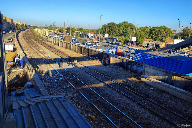 Автобусы в Асуан отправляются от станции, которая отмечена на Google Maps как Luxor cars stand Hurghada Aswan Edfu Esna Qena (координаты PM32+XX, Luxor, Luxor Governorate 1364321, Египет). Есть пешеходный мост через железную дорогу, но все идут напрямую через заботливо проделанные дыры в ограждении.