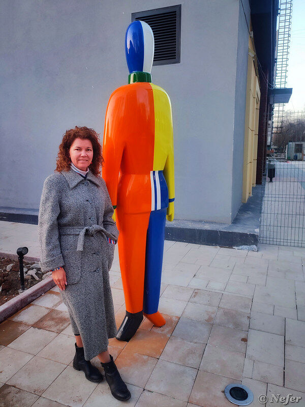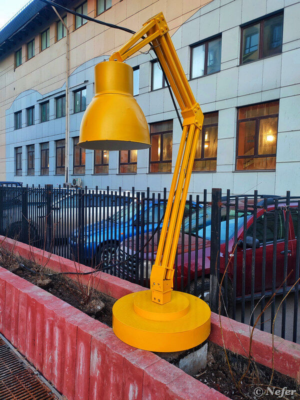 Вокруг дома светильники в виде настольных ламп. Я даже подумала, может они тоже сделаны по эскизу Малевича. Но вроде нет.