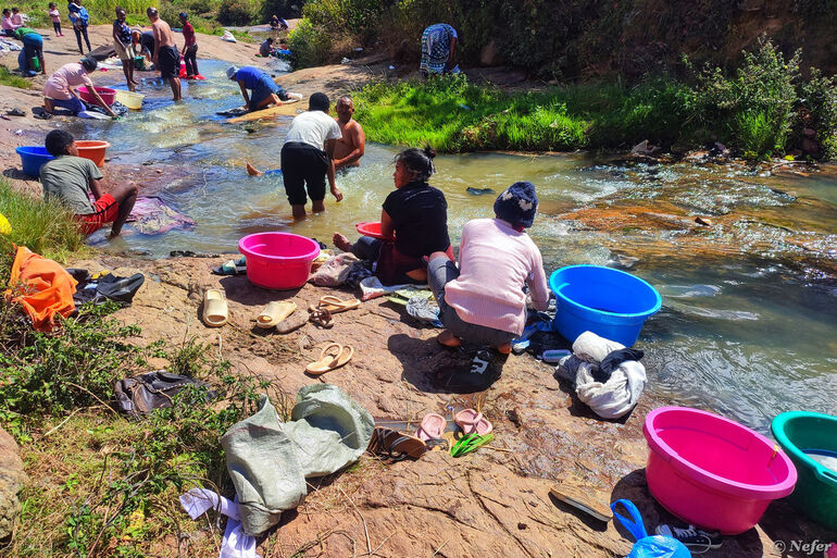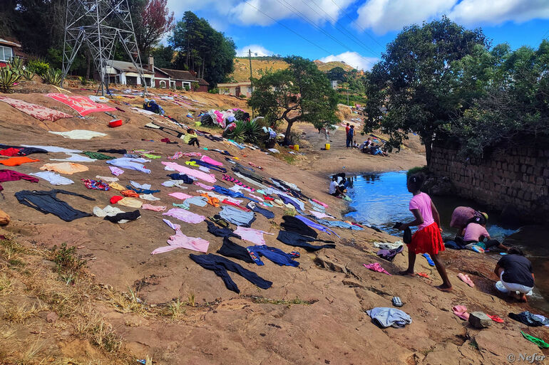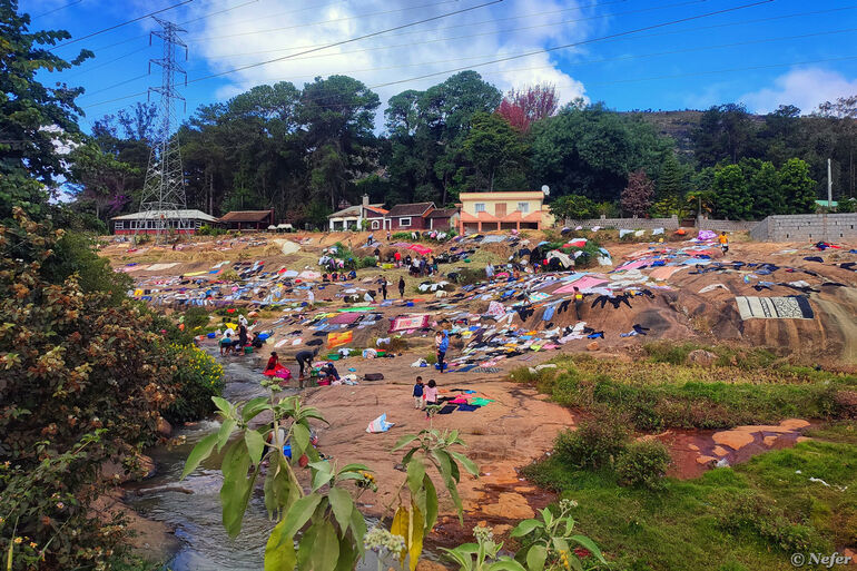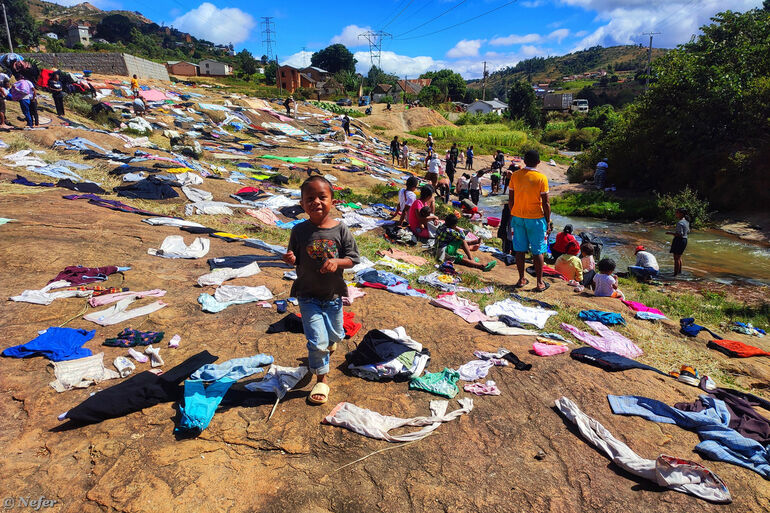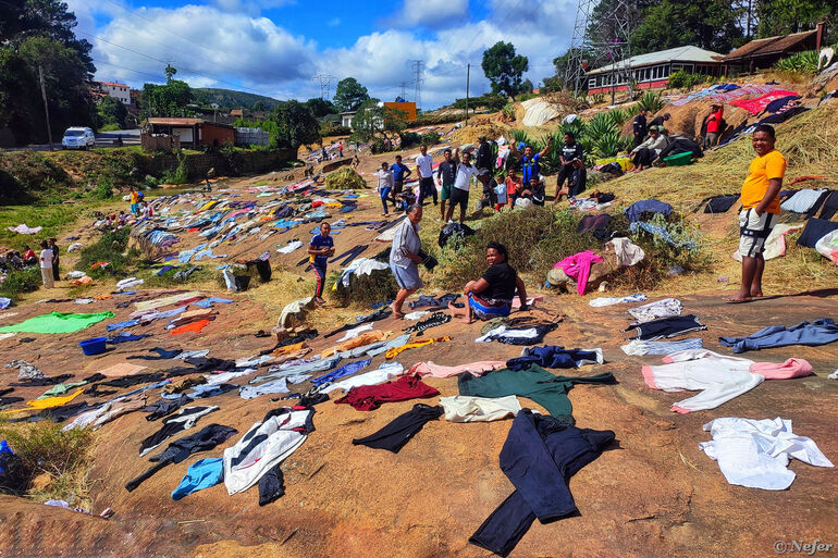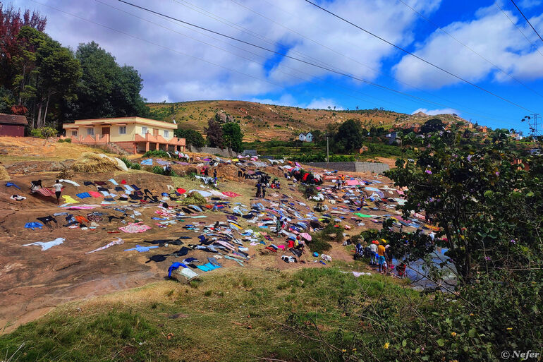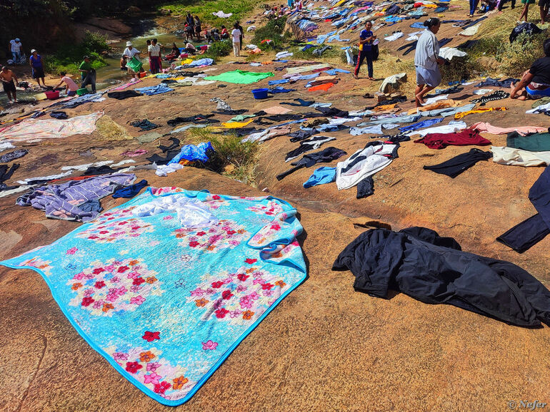 Кажется, что на Мадагаскаре стирают постоянно, прямо национальная особенность. Едешь, везде сушится белье: на полях, на пригорках, на обочинах и насыпях железных дорог. Стирают в реках, ручьях, озерах и каких-то непонятных водостоках. Но в Мейсомбаайне наиболее масштабная стирка.